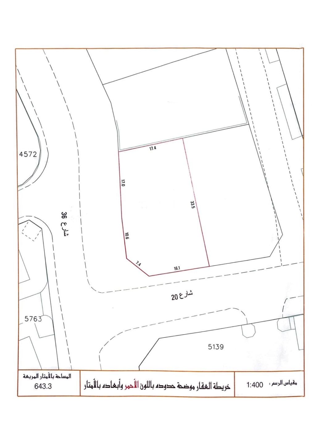 للبيع أرض سكنية في باربار، المساحة 643.3 متر مربع - التصنيف سكني حدائقي Rg، سعر القدم المربع 24 دينار، السعر الاجمالي 166.19 ألف دينار