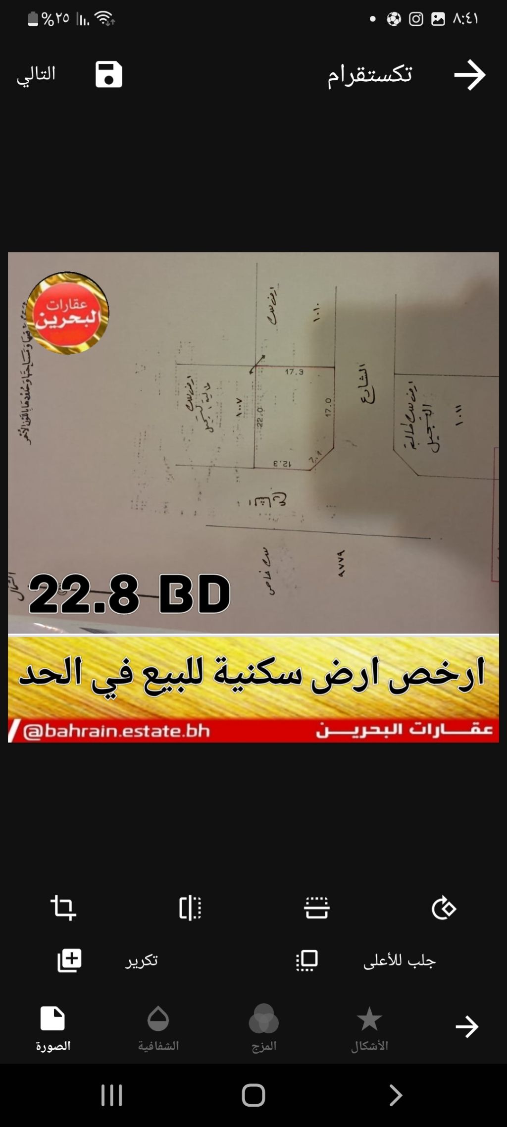 فرصة ذهبية للمستثمرين. أرض للبيع في الحد سكنية، المساحة 366 متر مربع، تصنيف الأرض RA، سعر القدم 22.8 دينار، السعر الإجمالي 90000 دينار.