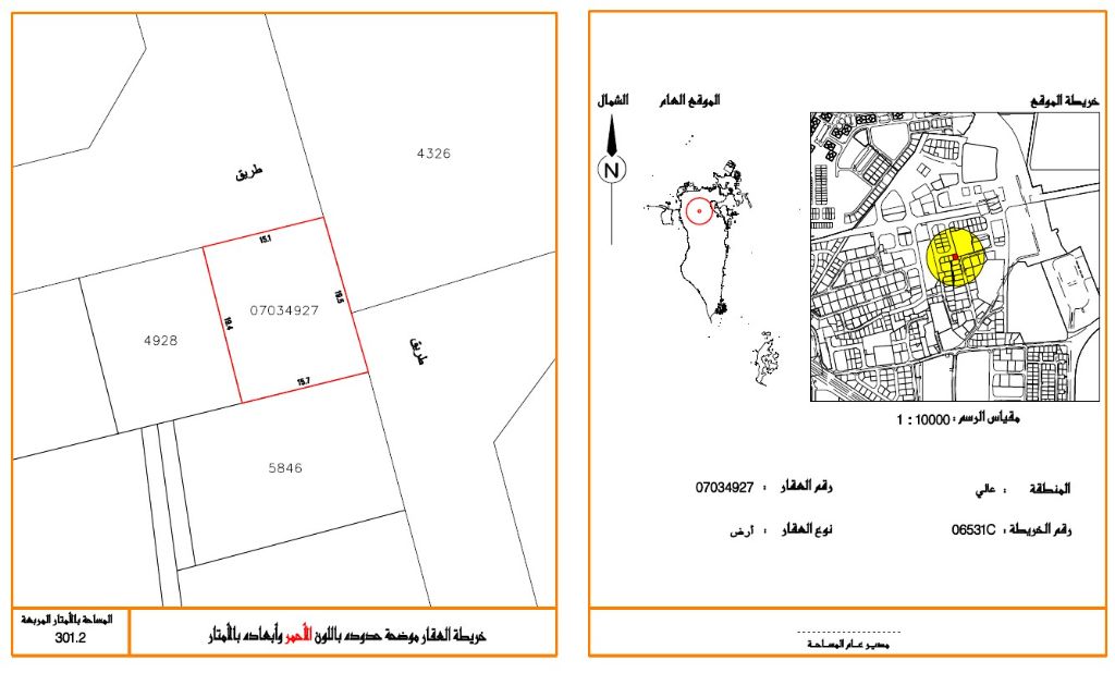 للبيع أرض في عالي المساحة 300 متر، المطلوب 95,000 دينار بحريني.