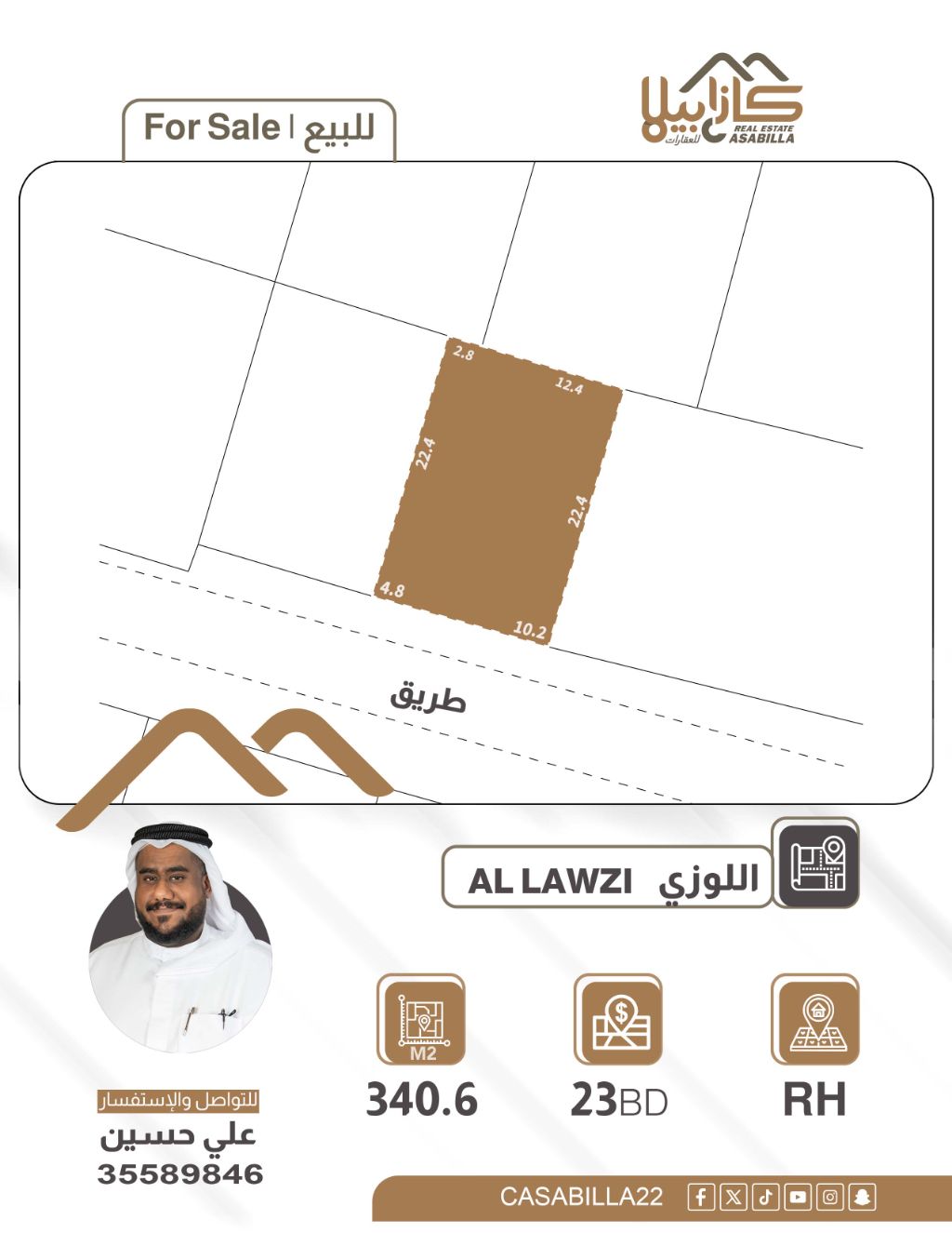 أرض سكنية واستثمارية في موقع مميز في اللوزي، بمساحة واسعة وقرب من الخدمات. فرصة رائعة لامتلاك أرض في منطقة اللوزي الهادئة والراقية. تتميز الأرض بموقع استراتيجي يجعلها خياراً مثالياً سواء لبناء بيت العمر أو للاستثمار العقاري، مع سهولة الوصول إلى جميع الخدمات والمرافق الحيوية. مساحة الأرض: 340.6 متر مربع. سعر القدم المربع: 23. سعر البيع: 87 ألف دينار. موقع هادئ ومميز مناسب للسكن أو الاستثمار، وقريب من جميع الخدمات. فرصة ممتازة.