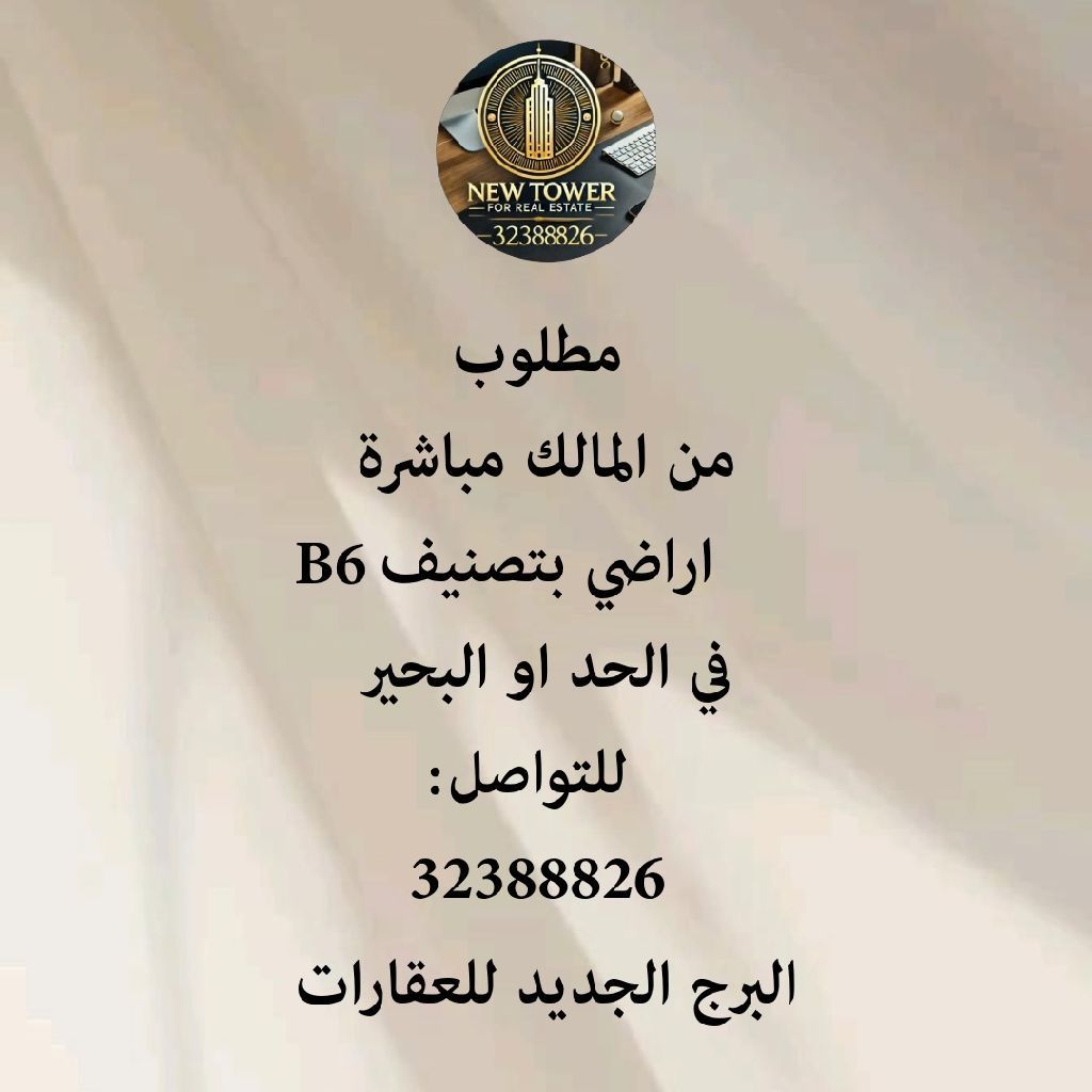 مطلوب من المالك مباشرة أراضي للبيع تصنيف B6 في الحد أو البحير للتواصل البرج الجديد للعقارات