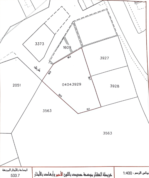 للبيع أرض في المصلى المساحة 533.7 متر - التصنيف سكني RB - سعر القدم 23 - السعر الإجمالي 132.2 ألف دينار مرجع LS1345