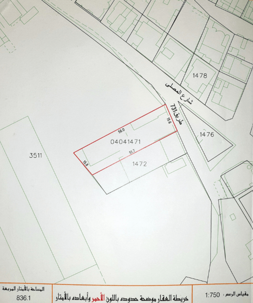 أماكن عقارية للبيع: أرض في طشان بمساحة 836.1 متر مربع - التصنيف سكني استثماري RB - سعر القدم 19 - السعر 172 ألف مرجع LS1398