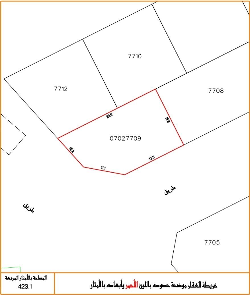 للبيع أرض تجارية خدمية في عالي (من المالك مباشرة). الموقع زاوية استراتيجية على طريقين (قرب مشويات النعيم). المساحة 423.1 متر مربع. الواجهة شمالية بطول 29م. رقم العقار 07027709. السعر 29 دينار للقدم (الإجمالي 132073 د.ب). فرصة استثمارية مميزة بدون عمولات وسيط.