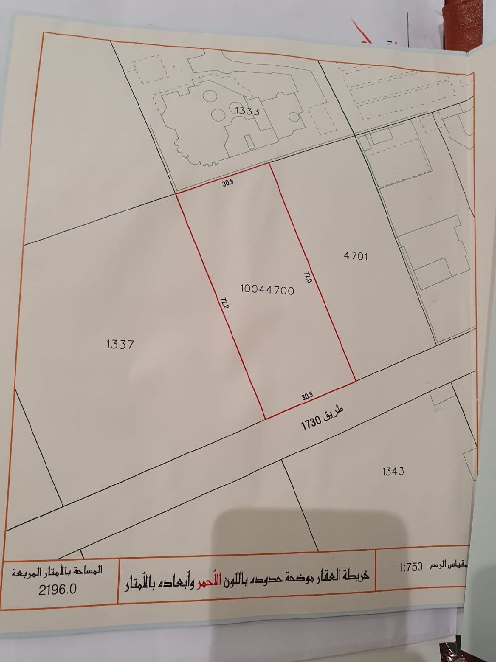 Land for sale in Damistan, one street, area 2200 meters, price 14 dinars, negotiable, code 84849, telephone