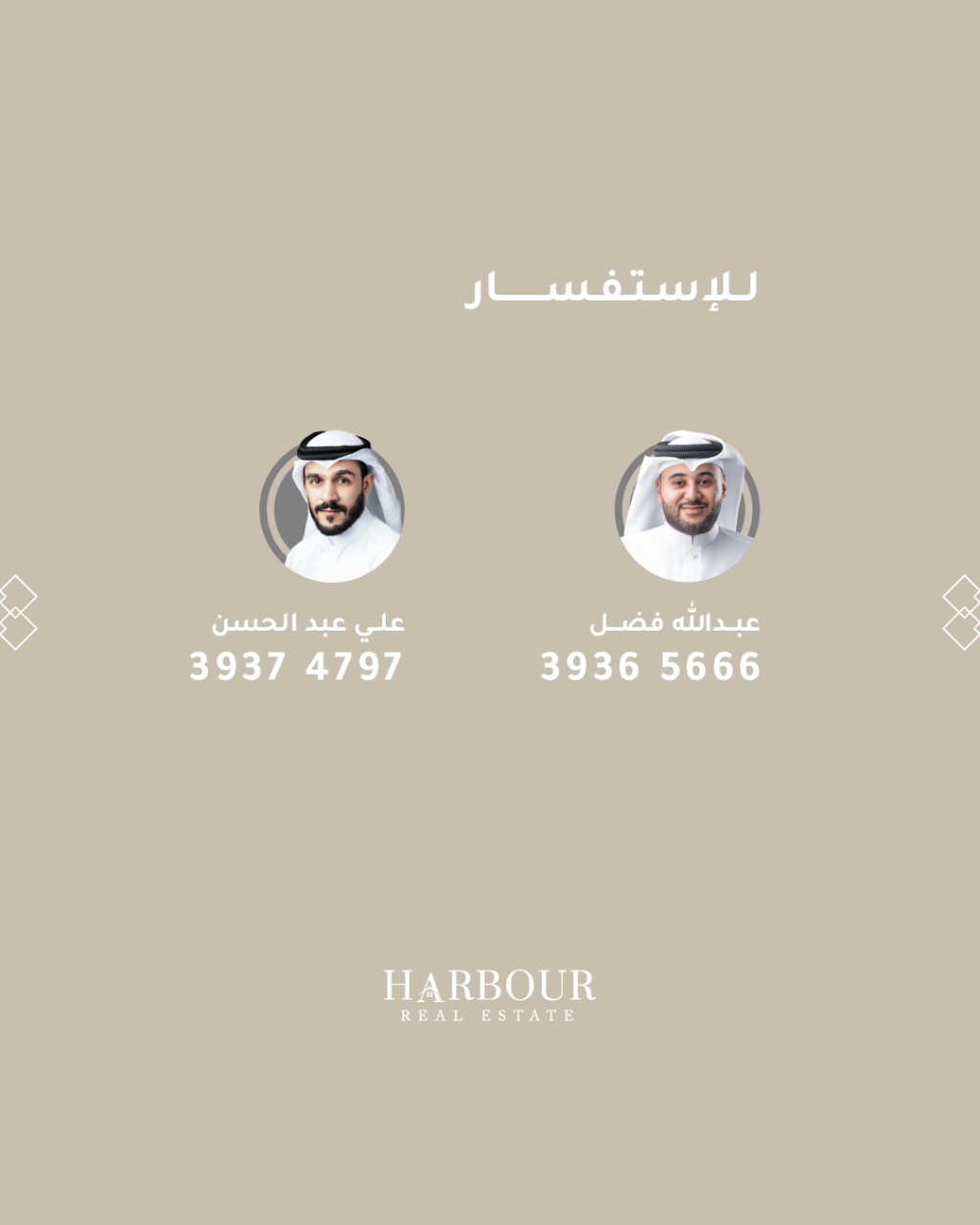 The land is located on two streets, front and back, in a commercial area. The land area is 412 SQM. The classification is RB. The price is 115300 dinars. For inquiries, contact Abdullah Fadl Ali Abdul Hassan AF - LS0932