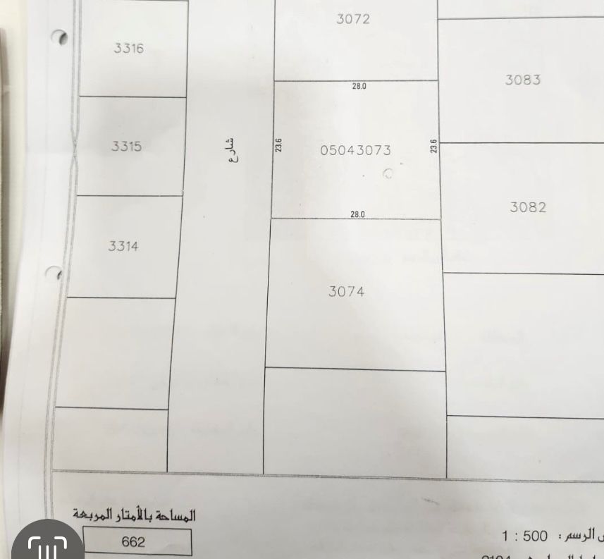 For sale, a land plot in Al Janabiyah (Sheikh Khaled Plan), land area 662 square meters - Classification: BD Buildings - Price per square foot: 32 dinars - Total price: 228,022 dinars.