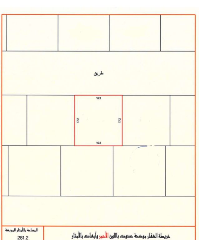 For sale a residential land in Galali - Area 281.2 SQM - Classification Residential RA - Price per square foot 28.1 dinars - Total price 85054 dinars