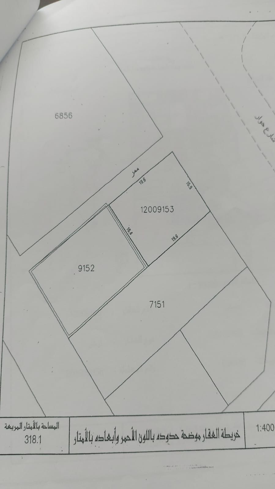 A residential land for sale in Askar, area 318 SQM, on a street and an alley, price 80000