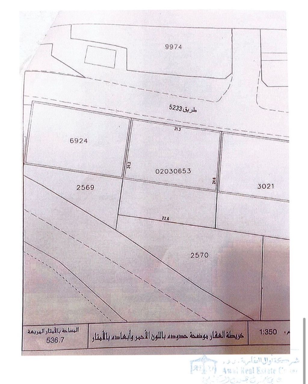 Commercial land for sale in Galali, land area 536 meters, 35 dinars per foot
