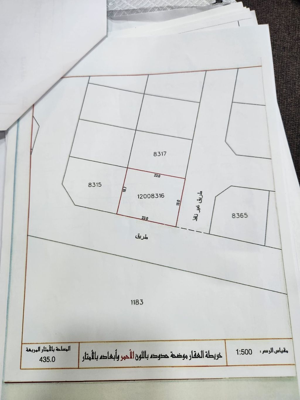 For sale: a residential land plot in Ras Hayan, area 435 square meters. Price per square meter is 21 dinars, classification residential RA. Total price is 98,329 dinars.