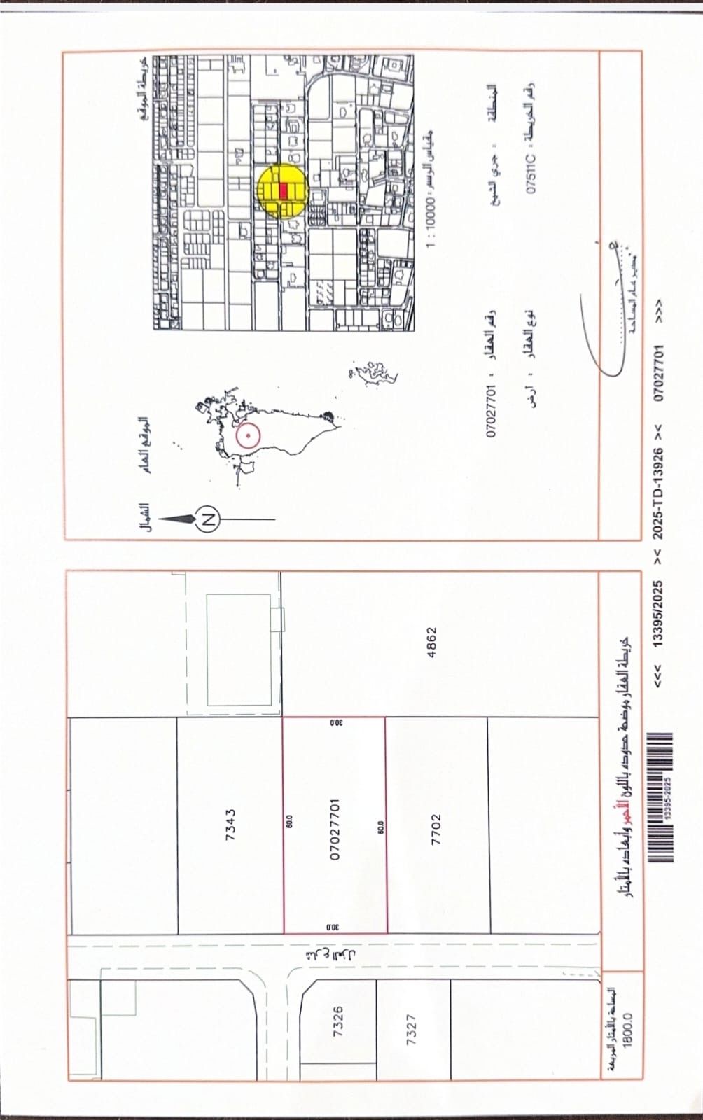 For sale two residential land plots in Jari Al Sheikh Riffa, area of each plot 1800 SQM, land classification RA residential 30*60 meters, price 26 dinars final per foot, price 503700 dinars for one plot