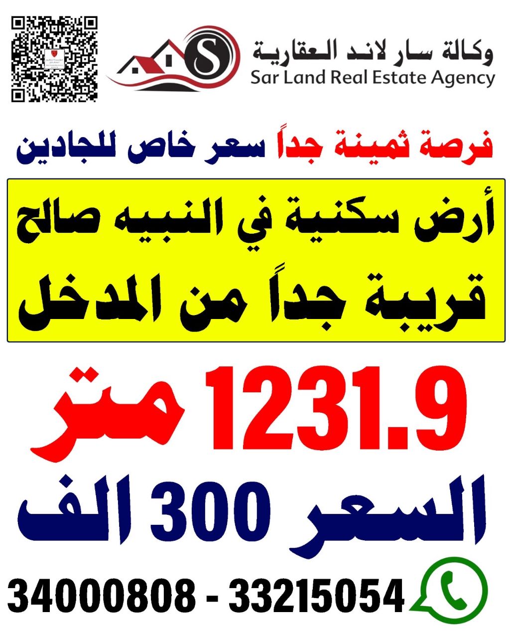 Land in Nabeh Saleh, villa plot area 1132 meters, classification RHA, price 300000 and negotiable, agency SAR Land real estate