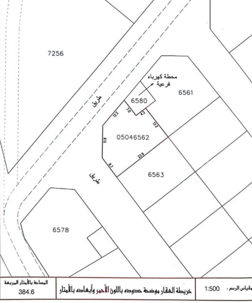 For sale a residential land in Bu Quwah - Saraya 2. Area 384.6 SQM. Classification residential RB. Price per square foot 31 dinars. Total price 128334 dinars