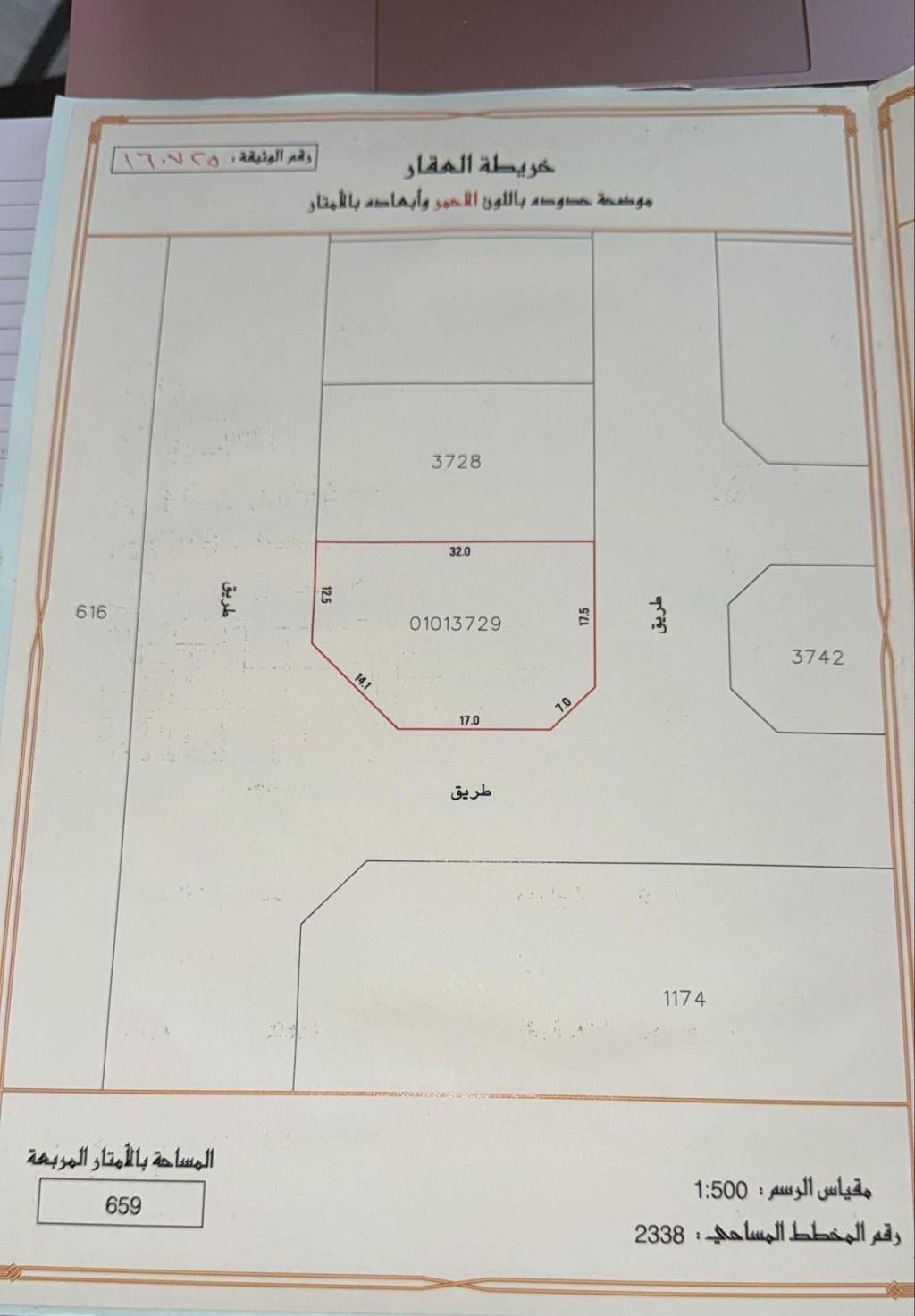 An investment land for sale in Hidd on 3 streets, classification B4, area 659 meters, price 206 thousand dinars