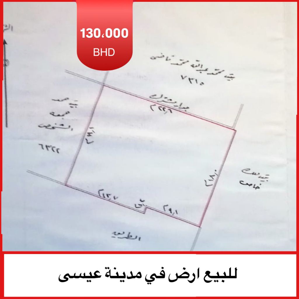 For sale, a land in Isa Town with an area of 424 SQM, near the gate. The asking price is 130000 dinars. For inquiries