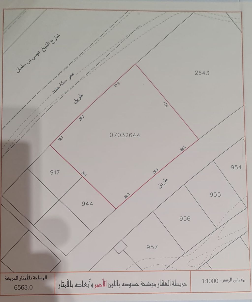 For sale: a land in Salmabad, classified as SP, with an area of 6563 square meters. The asking price is 30 dinars, negotiable. It is now located on three streets. Code: 99618.