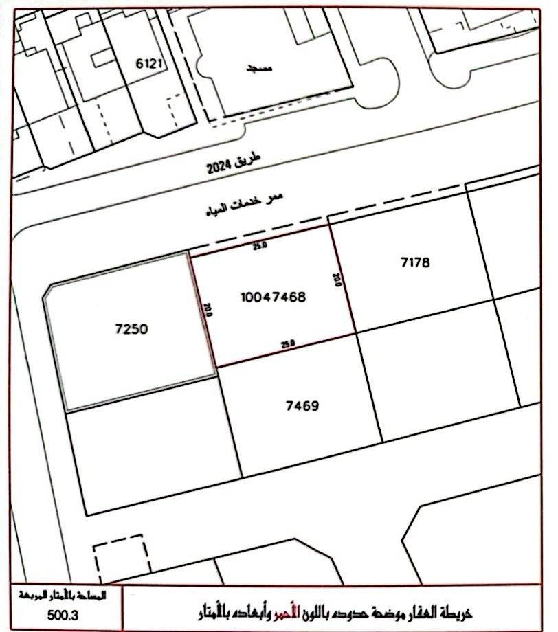 For sale: A land in Al-Lawzi with a wide frontage, classified as RA residential. The area is 500.3 square meters. The price is 21 dinars per foot, with a total price of 113,090 thousand dinars. For inquiries and requests, please contact Nizar Al-Sagheer Abdelfattah Hassan at the Masar Al-Mustaqbal Real Estate Office. All properties are required directly from the owner for sale - Land for sale, real estate - Bahrain, Al-Lawzi land - in - Al-Lawzi, wide frontage, classification - RA, residential land, area - 500.