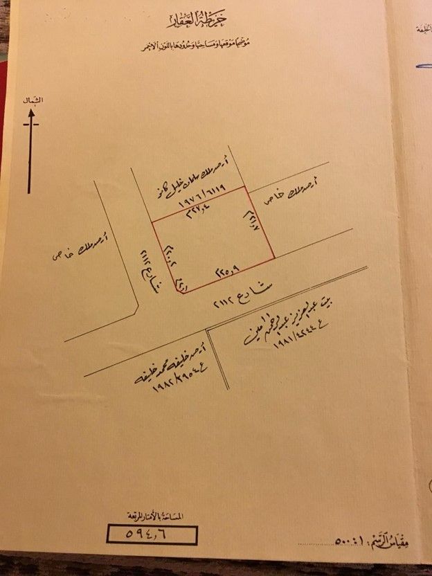 For sale, a land plot in Riffa Abu Quwa area. The land is suitable for residential or investment purposes. It is classified as RB, with an area of 594.6 square meters, located on two streets and a corner.