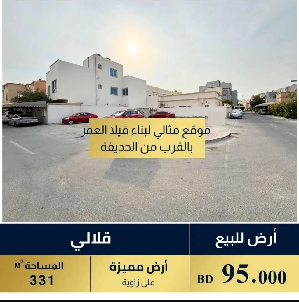 Land for sale in Qalali on two streets, price 95 thousand negotiable, area 331 square meters.