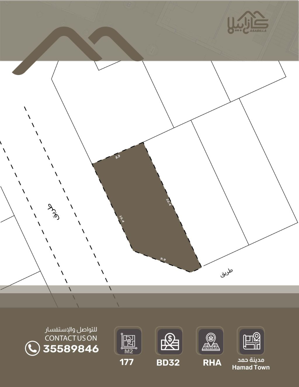 For sale - Land in Hamad City (Roundabout 2 - Damistan area). Your opportunity to own land in a prime location. Area: 177 square meters. Price: 60,000 dinars. Classification: RHA. Price per square foot: 32 dinars. Quiet location and close to services. For contact and inquiries.