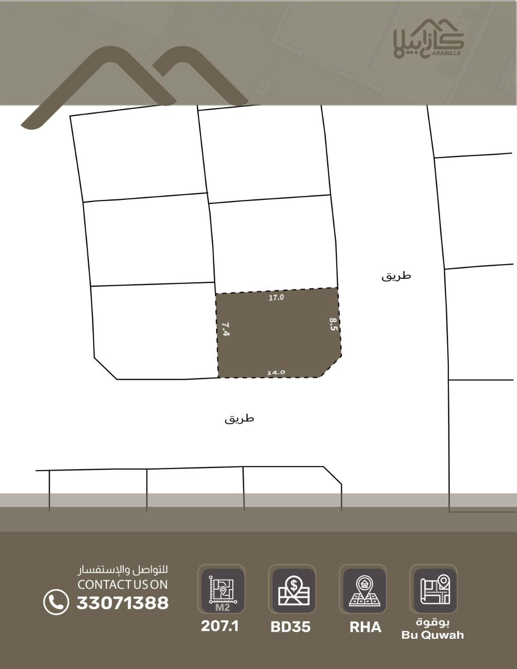 For sale: A distinctive residential land on two streets and a corner - an unmissable opportunity. The location is in a strong area - Saraya 2. The area is 207.1 square meters. Classification: RHA. Price: 78,500 dinars only. Features of the location include direct entrance and exit from the highway, proximity to the British Capital School and Arjan Village, close to all essential services and a fuel station. A future bridge will directly serve the area. It is an upscale, quiet residential location in high demand for investment. Suitable for investment or building a luxurious villa as per regulations.