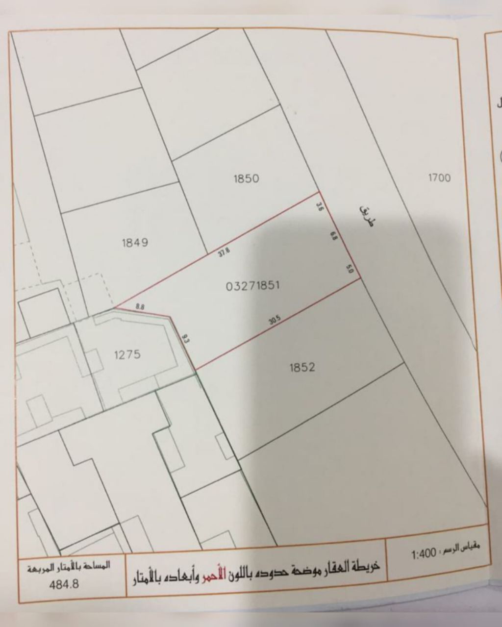 For sale, a land in Al-Sahla Al-Janubiya, a prime and quiet location suitable for a villa or building. Classification: RB. Property area: 484.8 square meters. Price per square foot: 26 dinars. Total price: 135,678 thousand dinars. For contact: Nizar Al-Saghir Abdulfattah Hassan, Future Path Real Estate Office. All properties required directly from the owner.