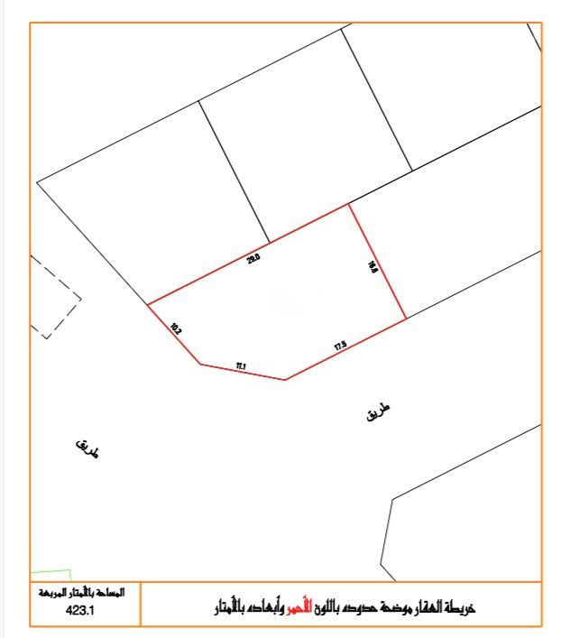 For sale: A commercial land in A'ali with an area of 423.1 square meters, classified as S Service Areas (commercial service). It is located on two streets and a corner. The price is 29 dinars per foot, with a total price of 132,073 thousand dinars. For inquiries and requests, please contact the following numbers: Nizar Al-Sagheer, Abdulfattah Hassan, Office: Masar Al-Mustaqbal Real Estate. All properties are required directly from the owner.
