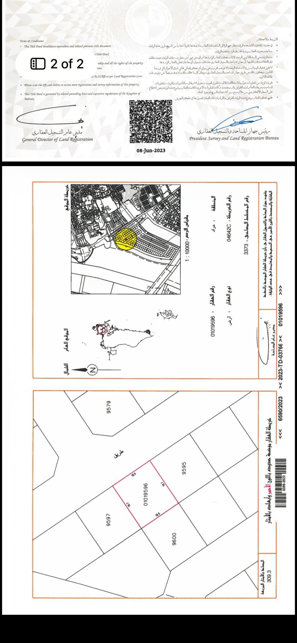 Land for sale in Arad, Naseem Arad project, behind Muharraq Club. Land area is 309 square meters, price per foot is 28 dinars.