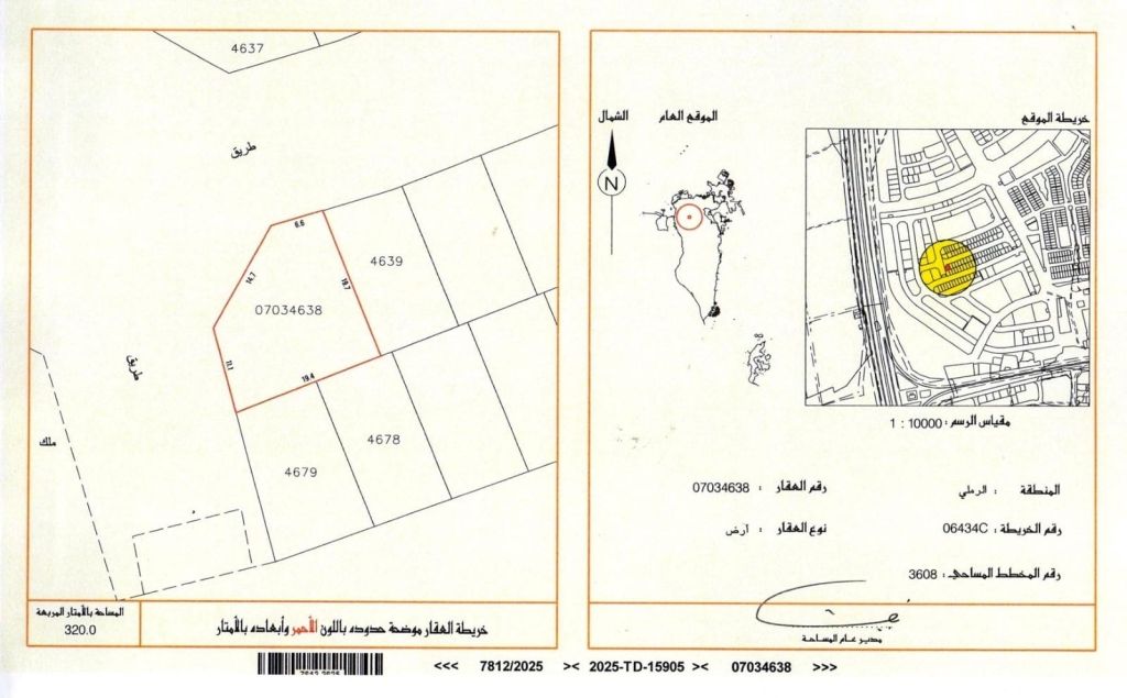 For sale, a land in the Al - Rumaili area, corner of two streets, area 320 SQM, paved streets with a width of 20 meters for the street, land classification RHA, near main exits, price 98167 dinars