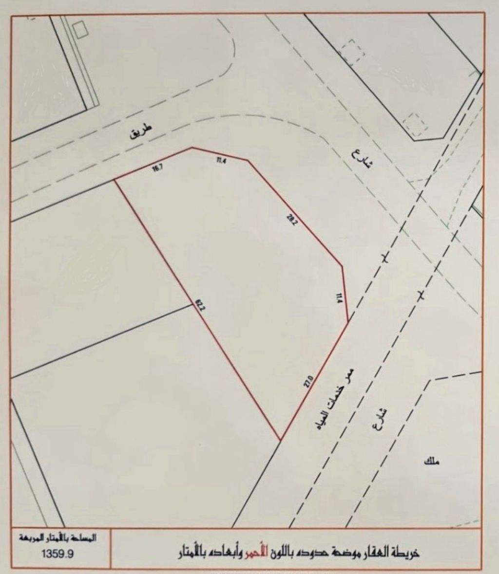 For sale: a commercial land in Al-Akar, area 1359.9 square meters, classification residential B4, price per foot 17 dinars, total price 248,845 dinars, prime location suitable for commercial investment.