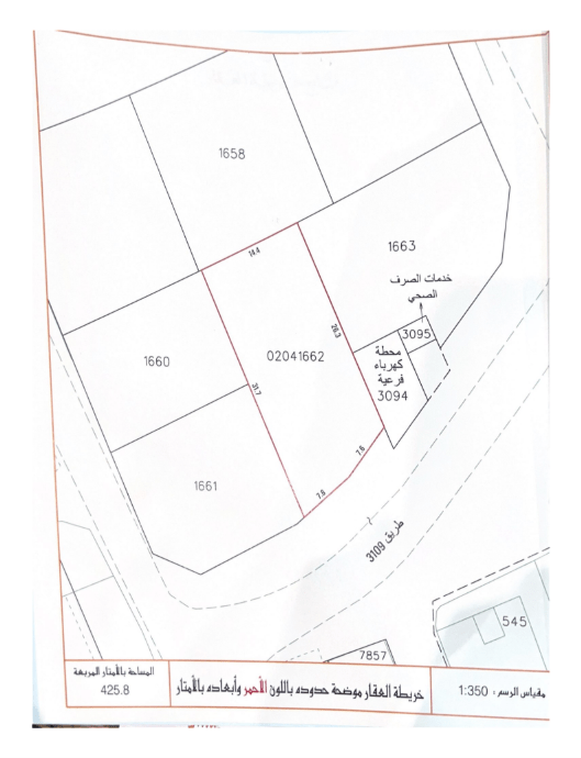 Real estate properties for sale: a residential land in Al-Dair. Area: 425.8 square meters. Classification: residential investment RB. Price per square foot: 26 dinars. Total price: 119,166 thousand dinars. Reference: LS1692