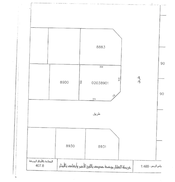 Amaqan Real Estate land for sale in Qalali (Dilmunia Plan), area 407.8 square meters - classification residential Ra - price per foot 30 dinars - price 132 thousand dinars. Reference LS0714