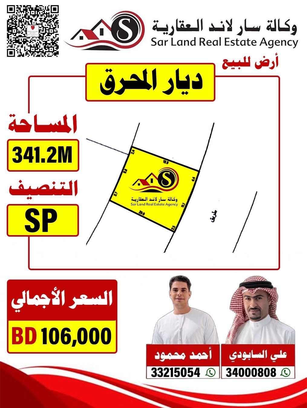 A residential land in Diyar Al Muharraq, Mazoon area, with an area of 341 square meters, priced at 106 thousand.