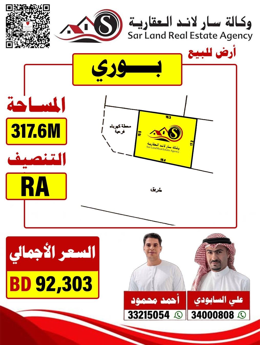 A residential land in Bouri, a prime location with the lowest price in the area, area 317 meters, price 92303.