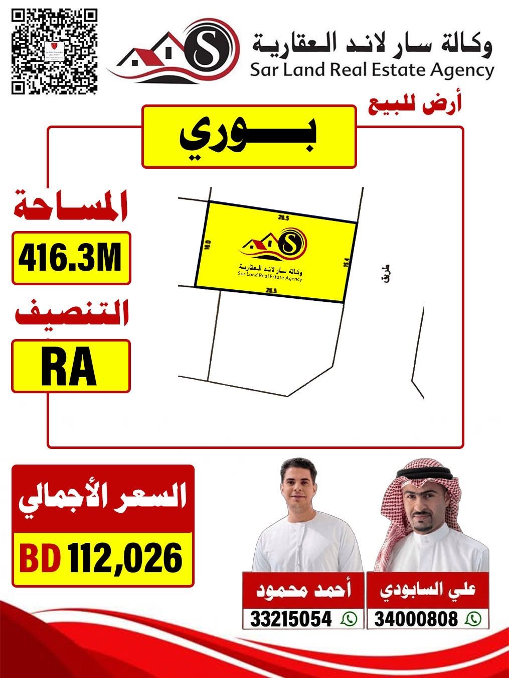 A residential land in Bouri, a prime location, with the lowest price in the area. Area: 416 square meters. Price: 112,026 thousand.