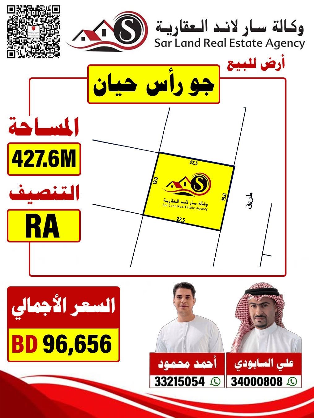 A residential land in Jau Ras Hayan, area 427 meters, price 96,656 thousand.