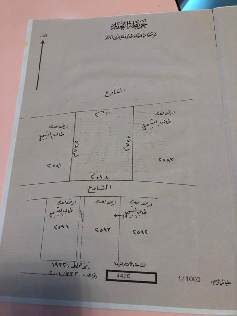 Real estate properties for sale: land in Hoora Sand - Area 374.2 meters - Classification residential RA - Price per foot 25.3 dinars - Total price 102 thousand dinars. Reference LS1723