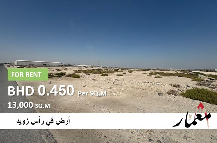 للإيجار أرض في راس زويد تصنيف صناعي، مساحة الأرض 13000 متر مربع، سعر المتر 450 فلس