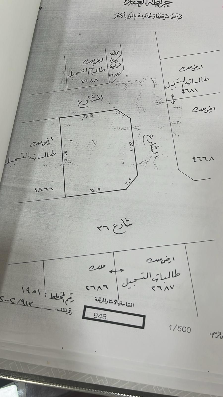 For rent: a land in Al-Malikiyah opposite the Al-Reef complex, directly located on the main road and situated on three streets. The area is 946 square meters. The required rent is 400 dinars per month. For inquiries and requests, please contact the following numbers: Nizar Al-Sagheer, Abdulfattah Hassan, or the Masar Al-Mustaqbal Real Estate Office. All properties are required directly from the owner.