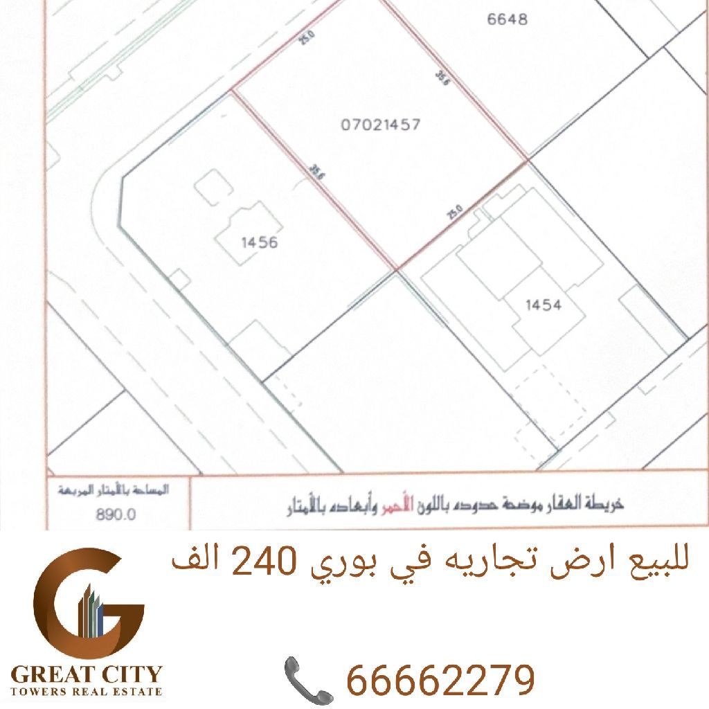 For sale, a commercial land in Bouri, land classification B3, land area 890 sqm, land price 240 thousand dinars, for inquiries.