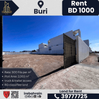 Land for rent - Bouri, prime location. Bouri, Bahrain. Land area 2003 SQM. Price 500 fils per SQM. monthly rent 1000 Bahraini dinars. Use logistics storage, Industrial. Land fully fenced. easy access for trucks and trailers. Land classified (commercial and storage) Available immediately. Suitable for storage, equipment storage, and distribution. easy access