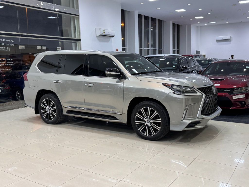 Lexus LX 570 Super Sport 2016 (Silver) with 123,300 km mileage. Full options include alloy wheels, sensors, Bluetooth, push button start, 360 camera, sun roof, cruise control, leather seats, new tires, new battery, and recently completed major service at the agency. Features 8 cylinders, 5.7L engine, 8 seats. Price BD 22,500 (negotiable). Insurance valid until January 2026 (full coverage). Agent maintained.