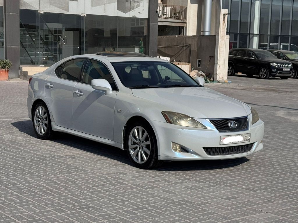 Lexus IS 300, 2007 model in Blue color. Mileage: 366,750 km. Full options including alloy wheels, sensors, camera, Bluetooth, leather seats, push start, cruise control, sun roof. 6-cylinder, 3.0L engine, 5 seats. Price: 2,350 (negotiable). Insurance valid until June 2026.