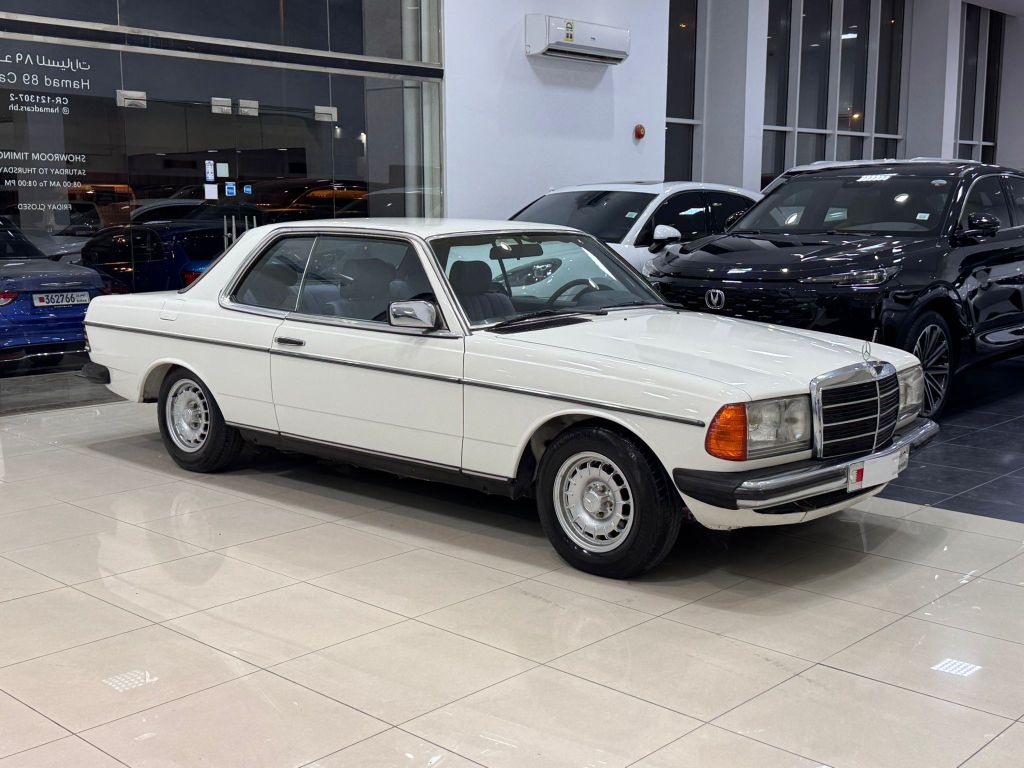 Mercedes Benz 280C 1985 (White) with 121,600 km mileage. Mid option with 6 cylinders, 2.8L engine, 5 seats. Price BD 3,900 (negotiable). Insurance valid until April 2026. Contact for more information.