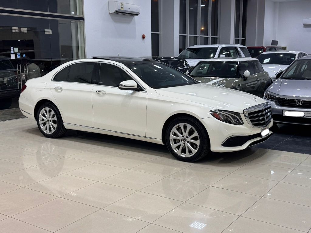 Mercedes Benz E 300 4MATIC 2019 (White) with 108,950 km mileage. Full option with alloy wheels, cruise control, leather seats, sensors, Bluetooth, panoramic roof, camera, and more. 4 cylinders, 2.0L engine, 5 seats. Price BD12,500 (negotiable). Insurance valid until December 2025. Contact for details.