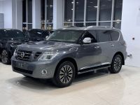 Nissan Patrol Platinum 2014 (Grey) with 271,200 km mileage. Full options include alloy wheels, sensors, Bluetooth, push button start, camera, sun roof, leather seats, and more. 8 cylinders, 5.6L engine, 5 seats. Price BD 9,800 (negotiable). Insurance valid until August 2026. Contact for details.