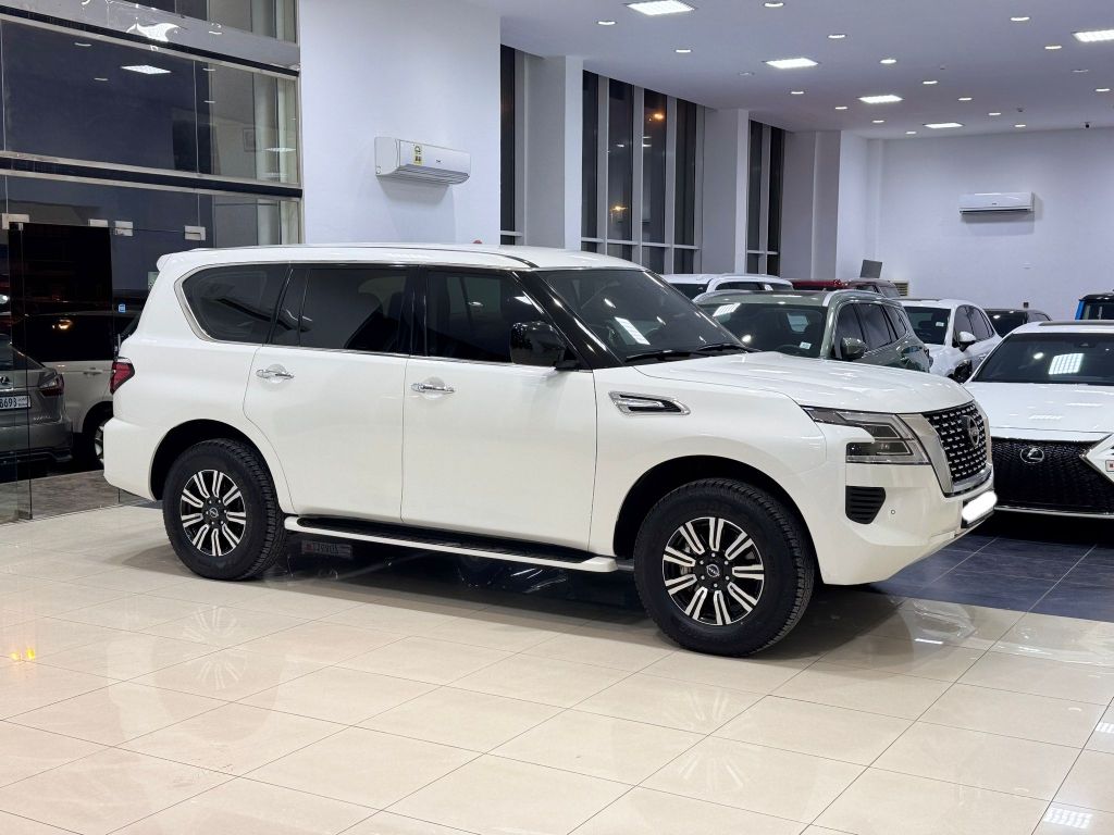 Nissan Patrol XE 2022 (White) Qatar agency, Mileage 103,650 Km, Mid Option Alloy Wheels, cruise control, Bluetooth, Sensors, Push Button Start, 6 Cylinders, 4.0L Engine, 7 Seats, Price BD14,900 (Negotiable), Insurance valid until July 2026, Contact for details.