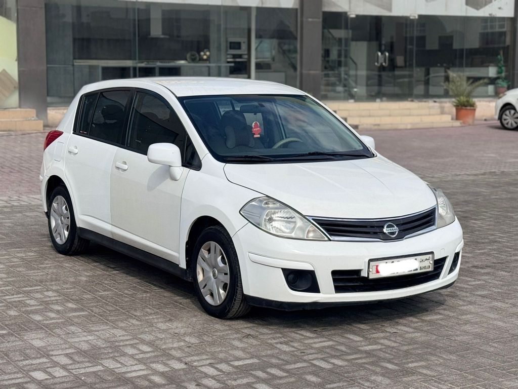 Nissan Tiida 2012 (White), Mileage: 242,300 km, Basic Option, 4 Cylinders, 1.8L Engine, 5 Seats, Price: BD 1600 (Negotiable), Insurance Valid Until July 26, Contact for details.