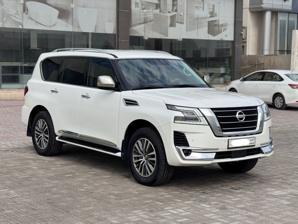 Nissan Patrol XE 2020 (White). Mileage: 126,700 km. Mid Option: Alloy wheels, camera, sensors, Bluetooth, cruise control, push start. 6 cylinders, 4.0L engine, 8 seats. Price: BD 10,900 (negotiable). Insurance valid until February 2026. Contact for details.
